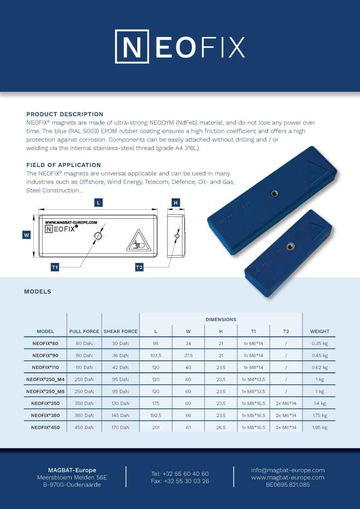 | NEOFIX®450 | 201 | 61 | 26,5 | 450 | 170 | 1X M8*16,5 | 2X M6*14 | 60 | 1,95 | BLEU |